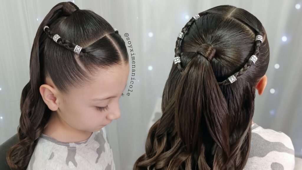 Este peinado es muy sencillo y rápido de hacer. Primero, se divide el cabello en dos secciones iguales y se hacen dos coletas a la misma altura. Luego, se colocan dos broches en forma de mariposas a cada lado de la coleta. Este peinado es ideal para una salida casual o una tarde de juegos.